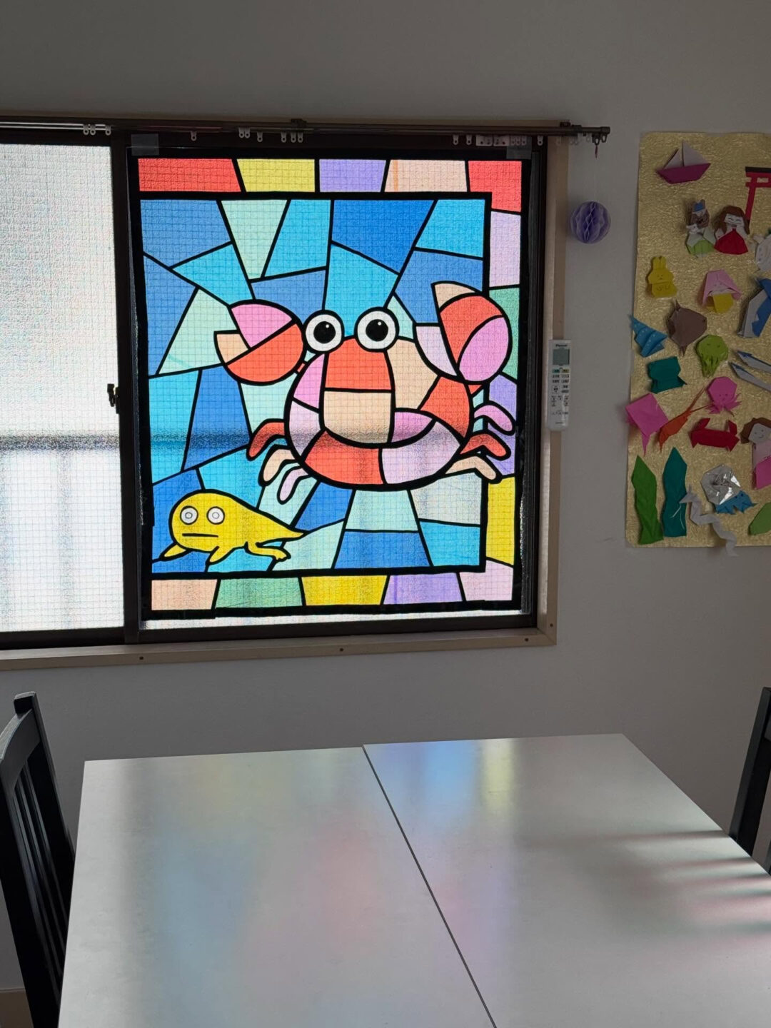 夜見るステンドグラスも良いけど昼部屋の中から見るステンドグラスも綺麗ですよ。是非明日ははんぶん堂7周年目のお祭りですからお立ち寄り下さい。お待ちしております。
