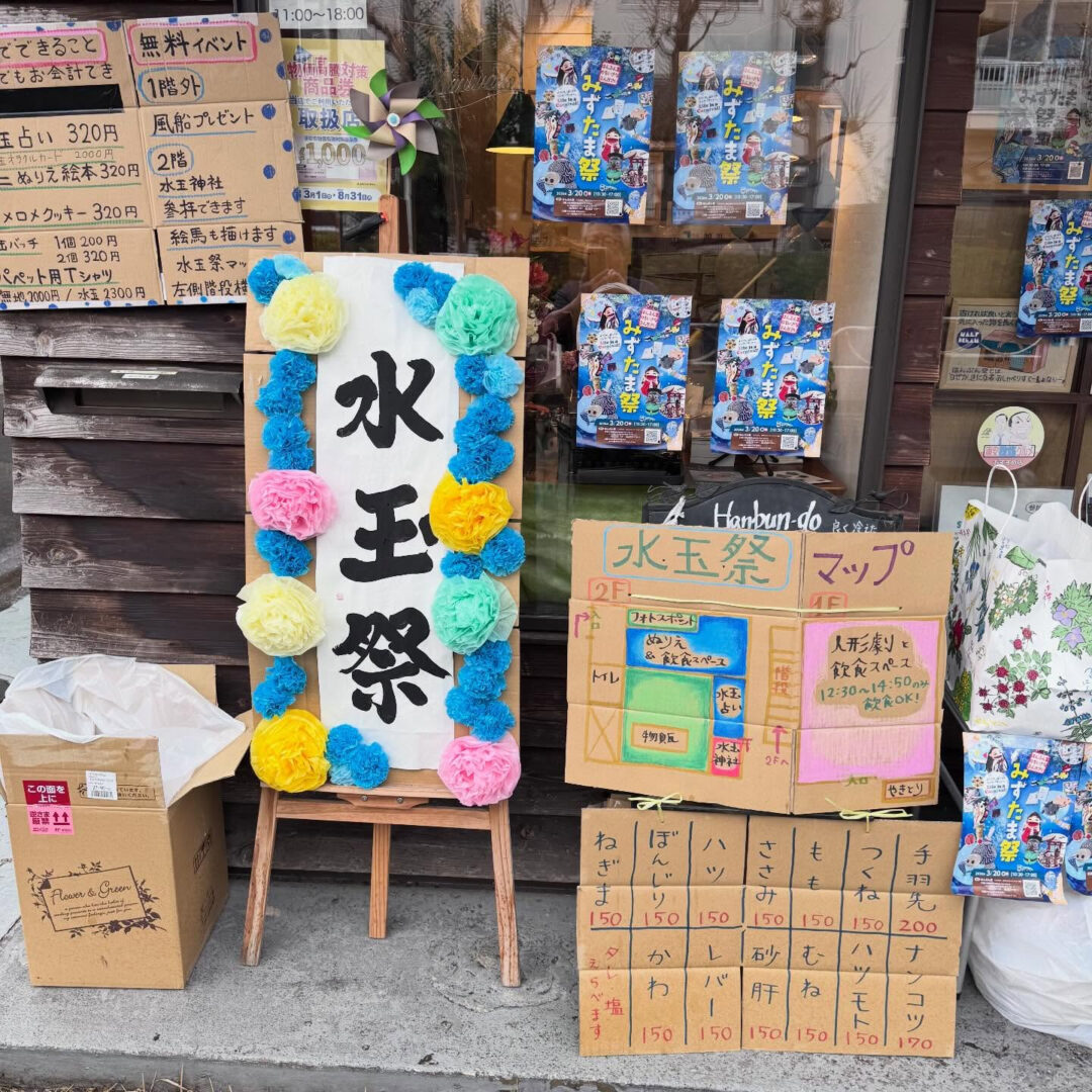 R8.3/20(金)祝日「はんぶん堂」の文化祭「みずたま祭」 R8.3/20(金)祝日「はんぶん堂」の文化祭「みずたま祭」です。 10:30〜17:00 1回目の人形劇始まりました。 焼鳥は外で焼いてます。 ドイツビールもありますよ! スキル 投稿日 2026年3月20日 ← R8.3/19(木) 「はんぶん堂」11:00〜18:00営 R8.3/21(土) 「はんぶん堂」11:00〜18:00営 →
