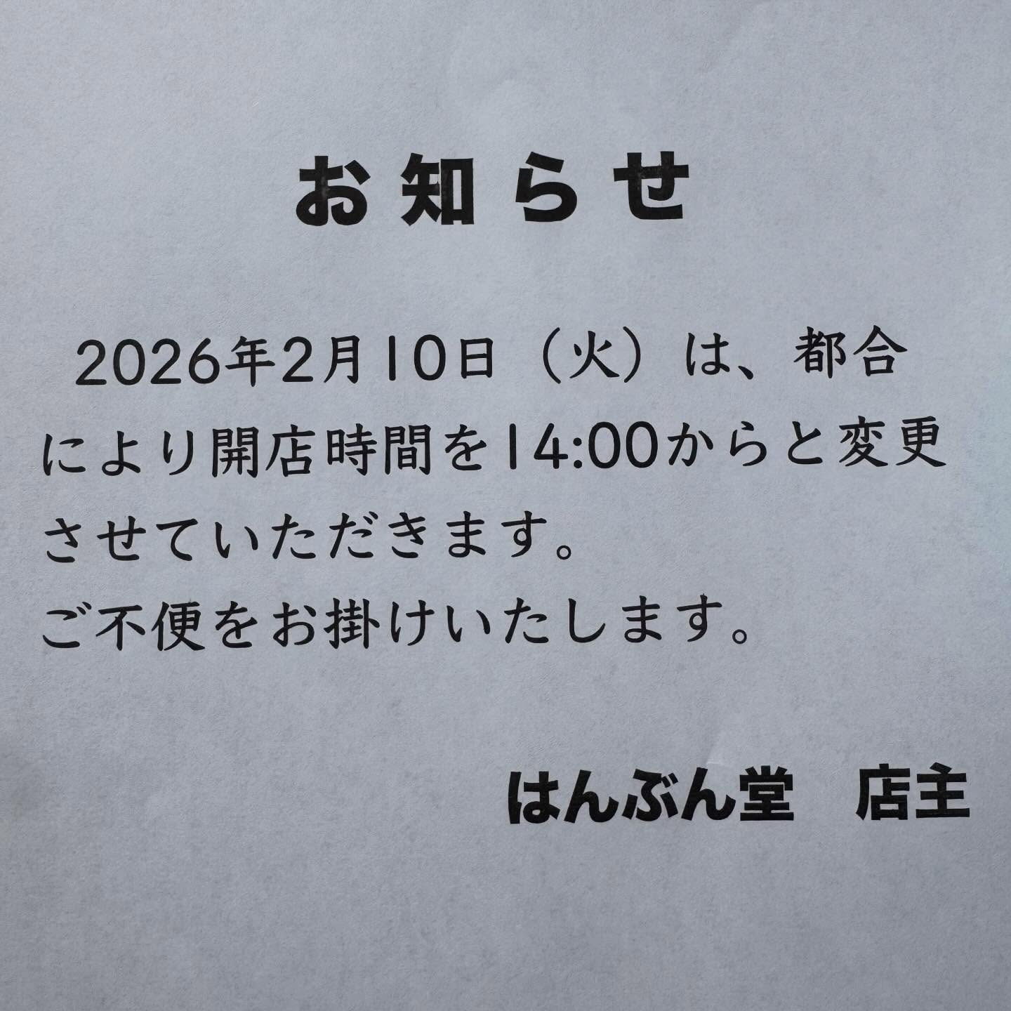R8.2/13(金) 「はんぶん堂」11:00〜18:00営