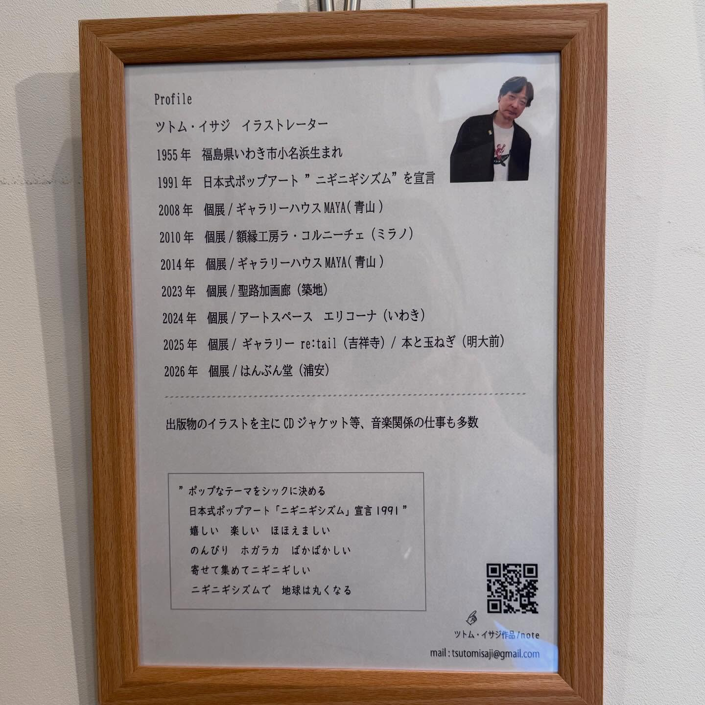 R8.4/10(金)「はんぶん堂」11:00〜18:00営業です。 ツトム・イサジ個展明日までです。終わっちゃいますよ。まだ見られてない方是非見に来て下さい。ツトム・イサジの世界に連れて行かれちゃいますよ! R8.4/9 (木) 「はんぶん堂」11:00〜18:00営業です。 ツトム・イサジ個展残すところ本日入れて3日となりました。 まだ「絵で音楽を奏で、遊んでみる。」観られてない方見て下さい。先日の4/5の日は「音楽で絵を […] R8.4/7 (火) 「はんぶん堂」11:00〜18:00営業です。 ツトム・イサジ個展「小さな『音楽戯画展」』絵で音楽を奏で、遊んでみる。6日目です。本日は作家さん在廊してませんが絵は観られます。メルヘンのようなフ […] R8.4/5 (日) 「はんぶん堂」11:00〜18:00ですが本日は早めに閉める場合あります。 はんぶん堂は通常営業とは違うスタイルになっています。 ツトム・イサジ個展は開催しておりますが文具などの買い物は出来ません。 […] R8.4/4 (土) 「はんぶん堂」11:00〜18:00営業です。 ツトム・イサジ個展3日目です。またもやあいにくの雨です。でも午後から晴れてくれると良いのですが‥‥ イサジさんもお待ちです。 絵についていろいろ聞けま […] R8.4/3 (金) 「はんぶん堂」11:00〜18:00営業です。 ツトム・イサジ個展「小さな『音楽戯画展』」2日目絶賛開催中です。本人在廊しています。 楽しい絵たちも待っていますよ。 天気が良いので是非はんぶん堂にお […] R8.4/2 (木) 「はんぶん堂」11:00〜18:00営業です。 本日より始まりましたツトム・イサジ個展 小さな「音楽戯画展」絵で音楽をを奏で、遊んでみる。 4/11まで開催します。彼の詩的な絵を見て下さい。ユーモア […]